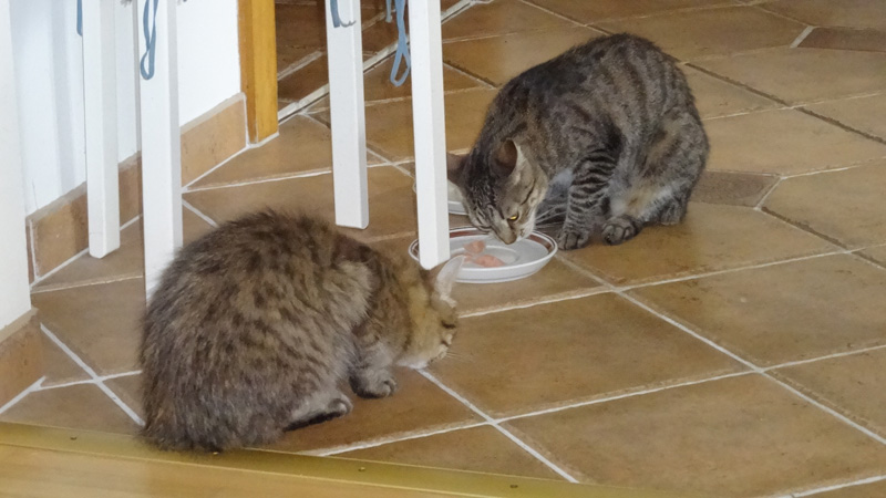 ... morgens, beim Katzenfrühstück!