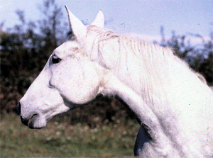 Als der Besitzer wunschgemäß den Wallach abdeckte, sprang auf uns beide der Funke über. Es präsentierte sich ein Mohrenschimmel mit weißen Behang und Schweif, der uns mit seinen klugen Augen ansah. Leise schnobernd berührte er meine ausgestreckte Hand, ohne die Ohren zu legen.