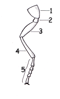 Das Insektenbein setzt sich aus fünf Gliedern zusammen: