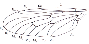 Im Grundschema unterscheiden wir vom vorderen (kostalen) Flügelrand beginnend folgende Adern: